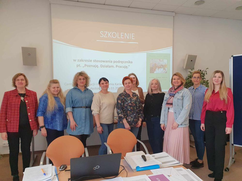 W dniach 24-25 marca 2025 r. w Białymstoku odbyło się szkolenie dla doradców zawodowych z województwa podlaskiego. Organizatorami byli doradcy z Centrum Informacji i Planowania Kariery Zawodowej. Uczestnicy zapoznali się z narzędziami i ćwiczeniami z podręcznika „Poznaję.