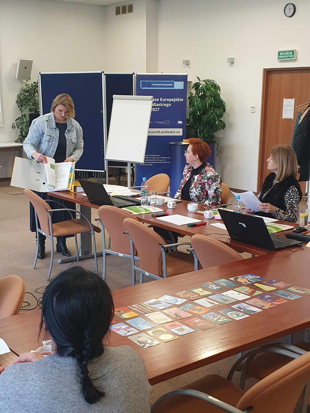 Dyskutowano również o możliwościach wykorzystania tych materiałów oraz o zaletach elastycznej formuły podręcznika, który stanowi źródło inspiracji do rozwoju warsztatu pracy doradcy zawodowego, a także ułatwia dopasowanie scenariuszy  zajęć grupowego poradnictwa zawodowego do potrzeb konkretnych grup osób bezrobotnych. W szkoleniu wzięło udział 8 doradców zawodowych z Powiatowych Urzędów Pracy - z Grajewa, Sokółki, Białegostoku, Wysokiego Mazowieckiego.